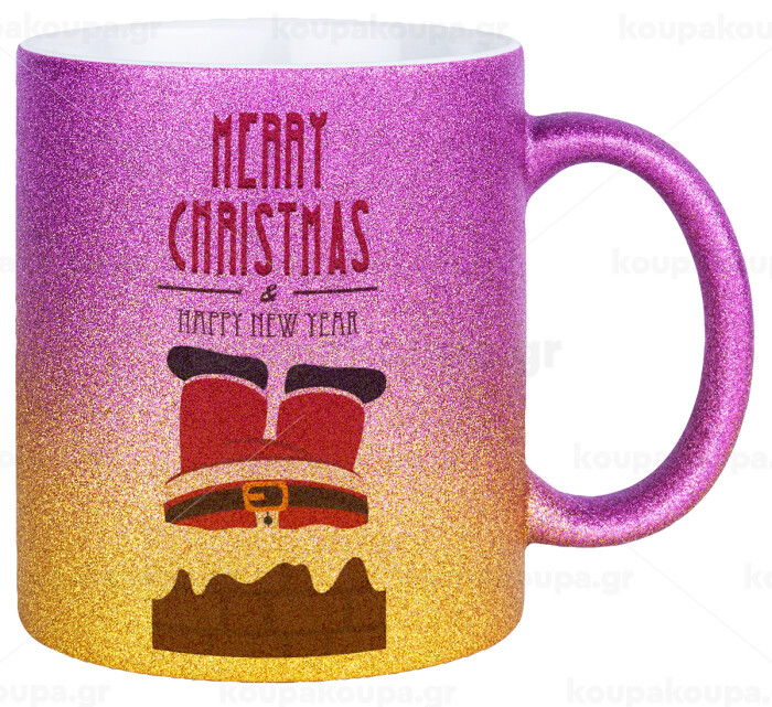 Merry christmas chimney, Κούπα Χρυσή/Ροζ Glitter, κεραμική, 330ml