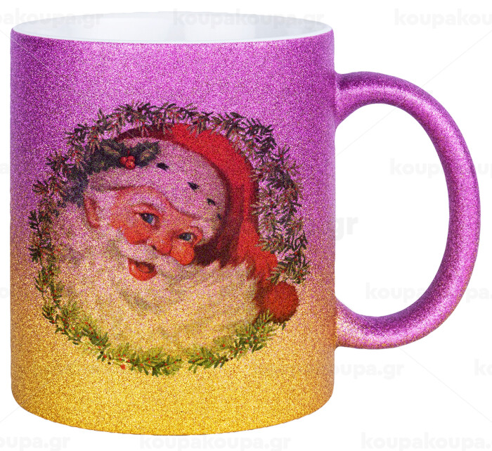 Santa Claus, Κούπα Χρυσή/Ροζ Glitter, κεραμική, 330ml