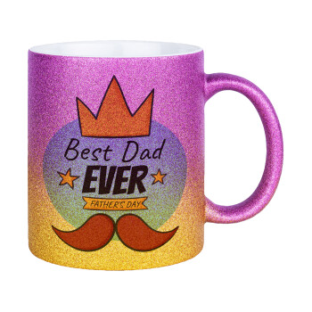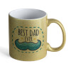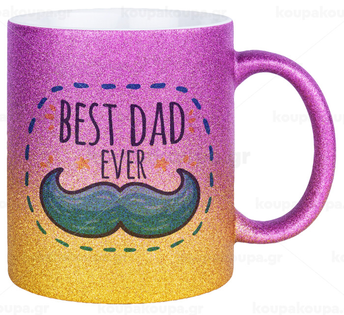Best dad ever μπλε μουστάκι, Κούπα Χρυσή/Ροζ Glitter, κεραμική, 330ml