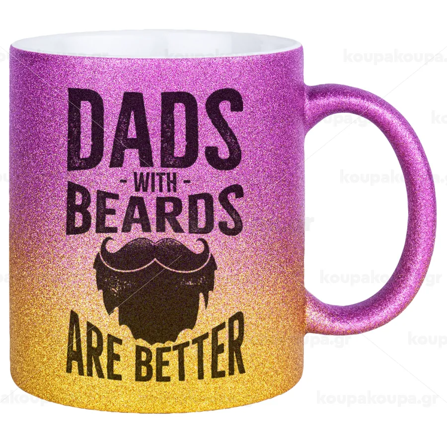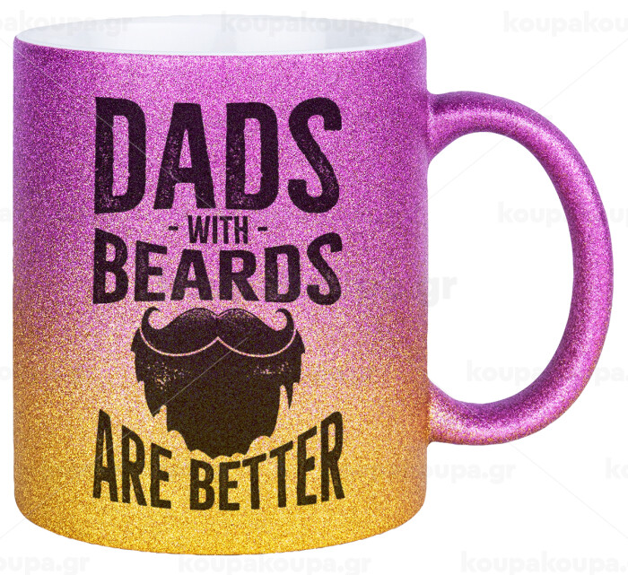 Dad's with beards are better, Κούπα Χρυσή/Ροζ Glitter, κεραμική, 330ml