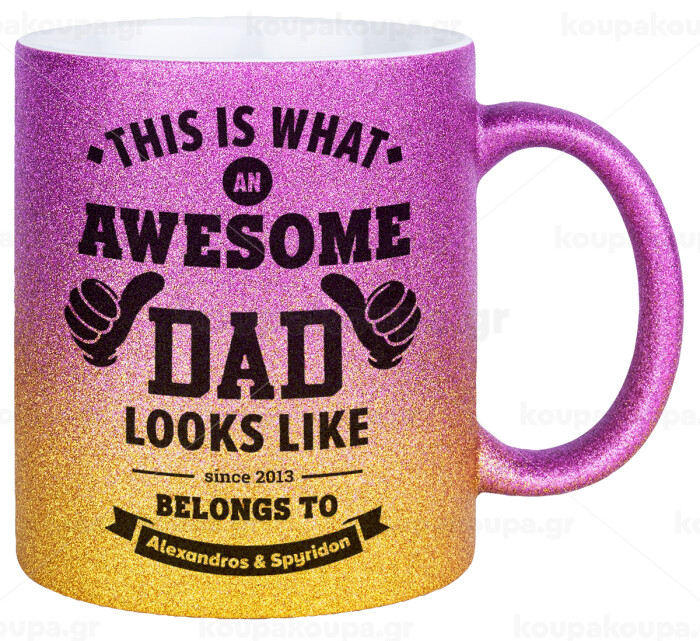 This is what an Awesome DAD looks like, Κούπα Χρυσή/Ροζ Glitter, κεραμική, 330ml