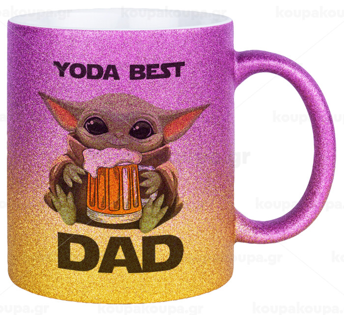 Yoda Best Dad, Κούπα Χρυσή/Ροζ Glitter, κεραμική, 330ml