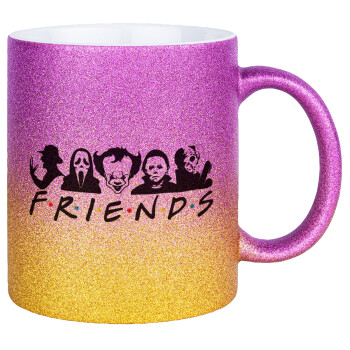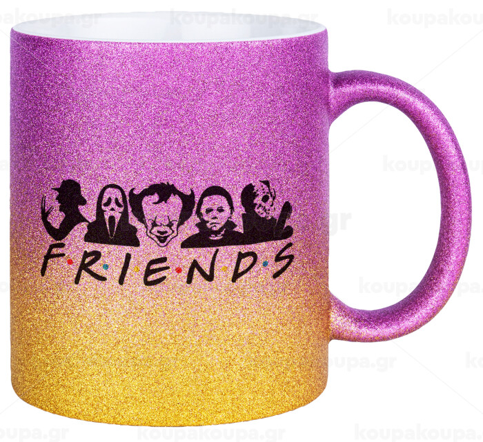 Halloween Friends, Κούπα Χρυσή/Ροζ Glitter, κεραμική, 330ml