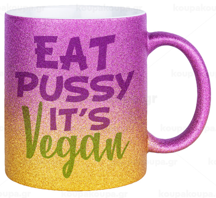 EAT pussy it's vegan, Κούπα Χρυσή/Ροζ Glitter, κεραμική, 330ml