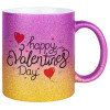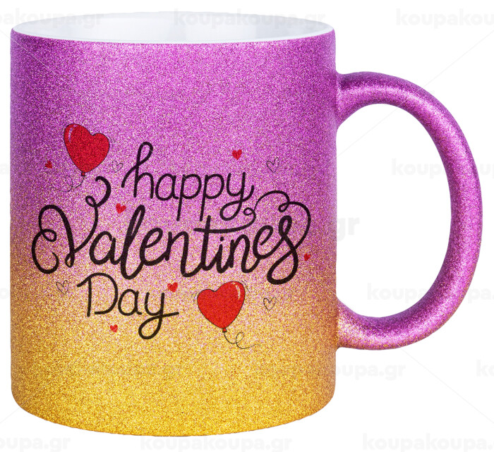 Happy Valentines Day!!!, Κούπα Χρυσή/Ροζ Glitter, κεραμική, 330ml