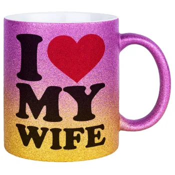I Love my Wife, Κούπα Χρυσή/Ροζ Glitter, κεραμική, 330ml