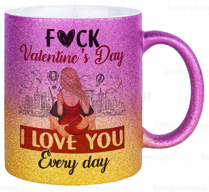 I love You Everyday , Κούπα Χρυσή/Ροζ Glitter, κεραμική, 330ml