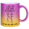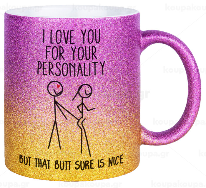 I Love you for your personality, Κούπα Χρυσή/Ροζ Glitter, κεραμική, 330ml
