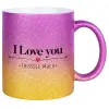 I Love you thisssss much, Κούπα Χρυσή/Ροζ Glitter, κεραμική, 330ml