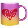 Love, Κούπα Χρυσή/Ροζ Glitter, κεραμική, 330ml
