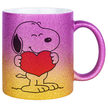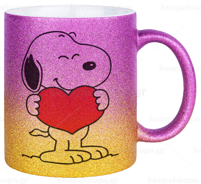 Snoopy takemy heart, Κούπα Χρυσή/Ροζ Glitter, κεραμική, 330ml