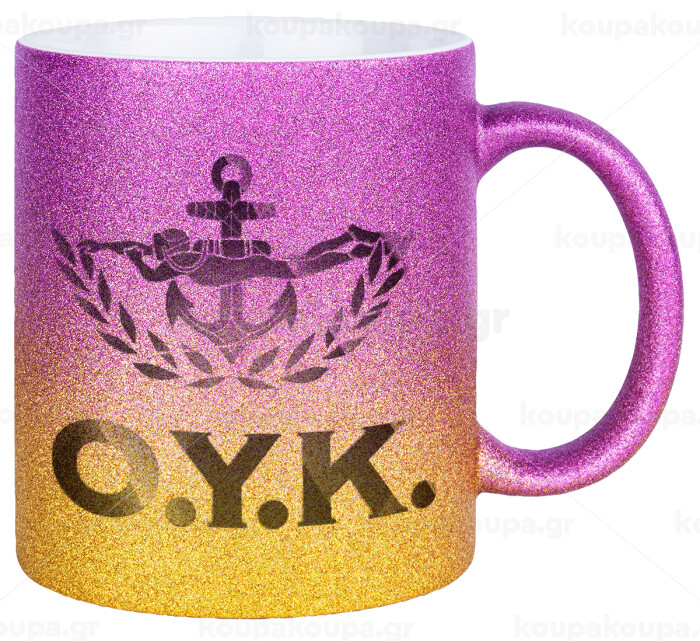 Ο.Υ.Κ., Κούπα Χρυσή/Ροζ Glitter, κεραμική, 330ml
