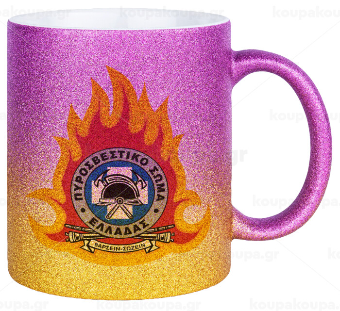 Πυροσβεστικό σώμα Ελλάδος, Κούπα Χρυσή/Ροζ Glitter, κεραμική, 330ml