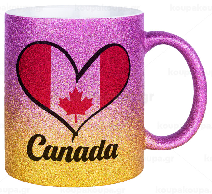 Canada flag, Κούπα Χρυσή/Ροζ Glitter, κεραμική, 330ml