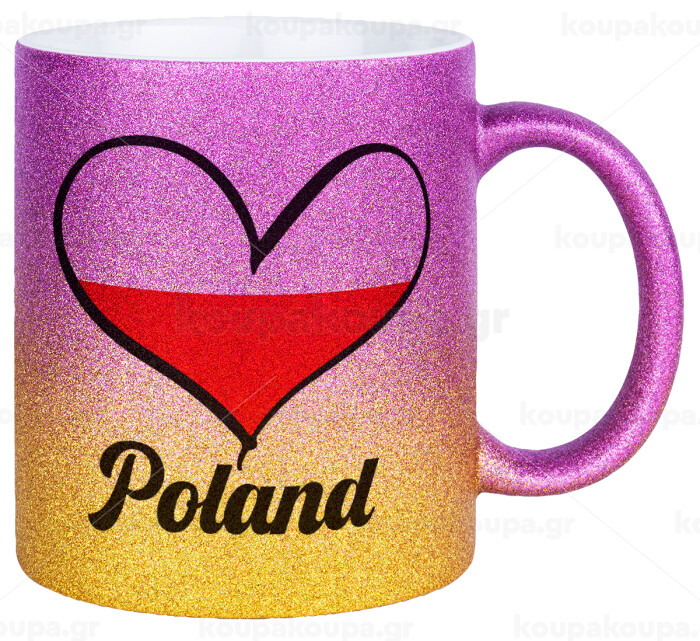 Poland flag, Κούπα Χρυσή/Ροζ Glitter, κεραμική, 330ml