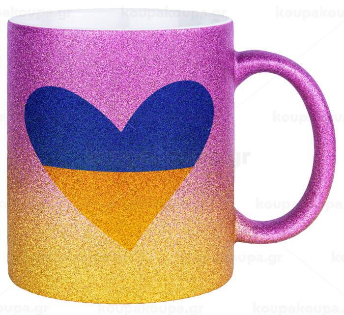 UKRAINE heart, Κούπα Χρυσή/Ροζ Glitter, κεραμική, 330ml