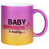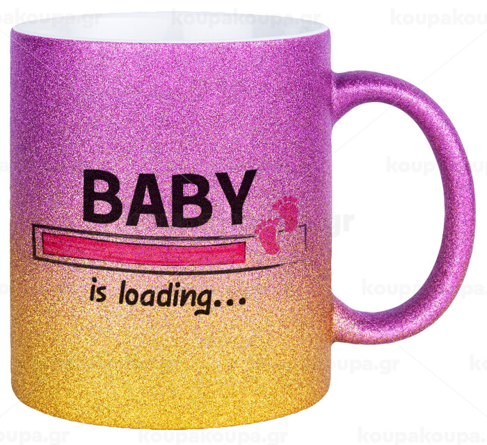 Baby is Loading GIRL, Κούπα Χρυσή/Ροζ Glitter, κεραμική, 330ml