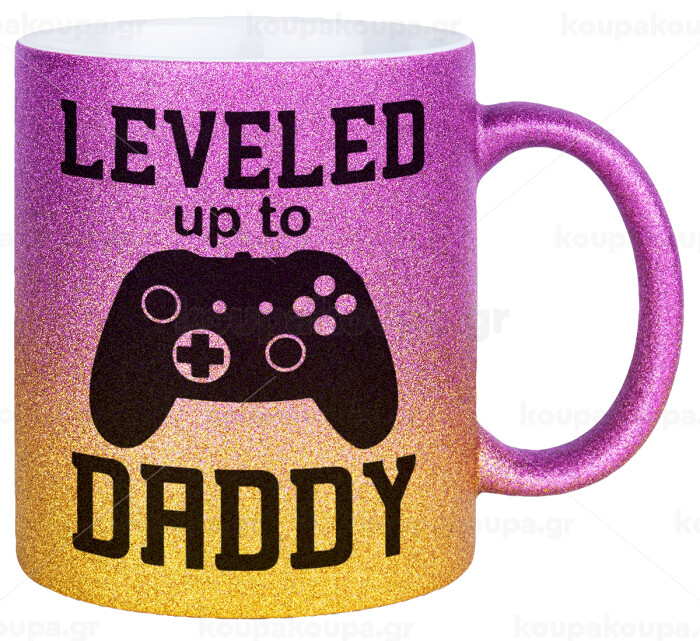 Leveled to Daddy, Κούπα Χρυσή/Ροζ Glitter, κεραμική, 330ml