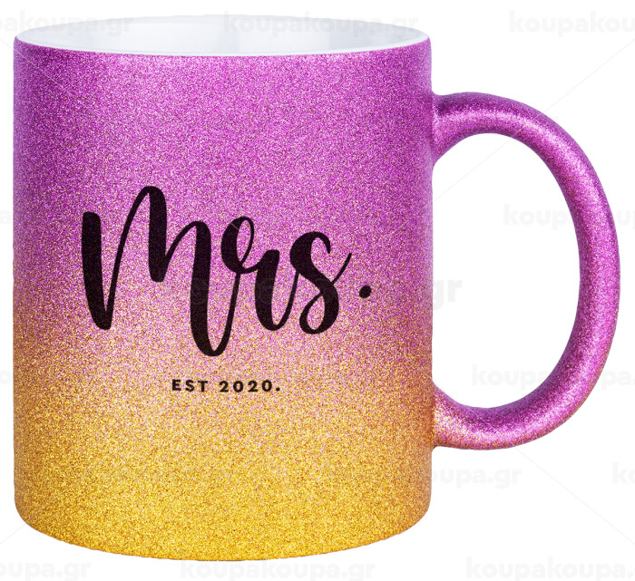 Mr & Mrs (Mrs), Κούπα Χρυσή/Ροζ Glitter, κεραμική, 330ml