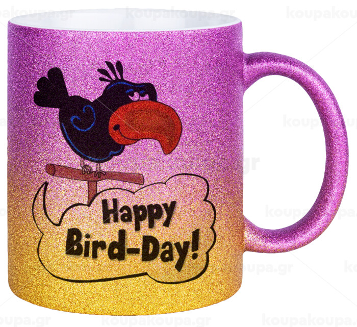 Happy Bird Day, Κούπα Χρυσή/Ροζ Glitter, κεραμική, 330ml