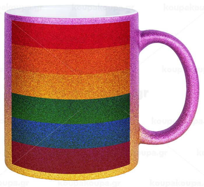Rainbow flag (LGBT) , Κούπα Χρυσή/Ροζ Glitter, κεραμική, 330ml