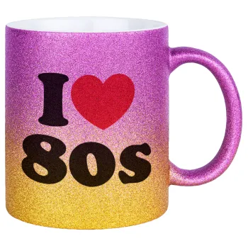 I Love 80s, Κούπα Χρυσή/Ροζ Glitter, κεραμική, 330ml