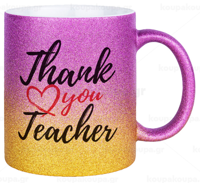 Thank you teacher, Κούπα Χρυσή/Ροζ Glitter, κεραμική, 330ml