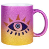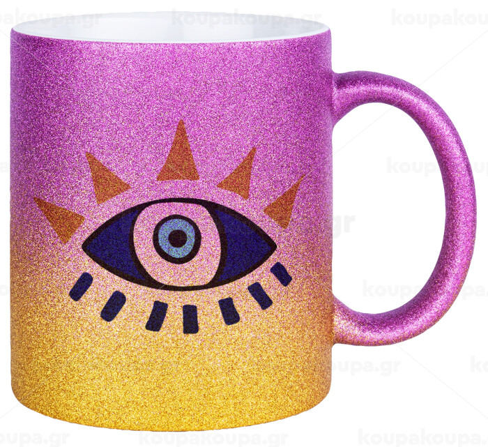 Μάτι, Κούπα Χρυσή/Ροζ Glitter, κεραμική, 330ml