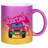 Barbie car, Κούπα Χρυσή/Ροζ Glitter, κεραμική, 330ml