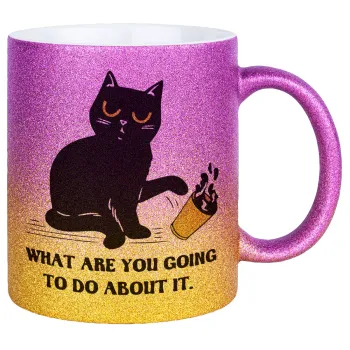 CAT, what are you going to do about it!, Κούπα Χρυσή/Ροζ Glitter, κεραμική, 330ml