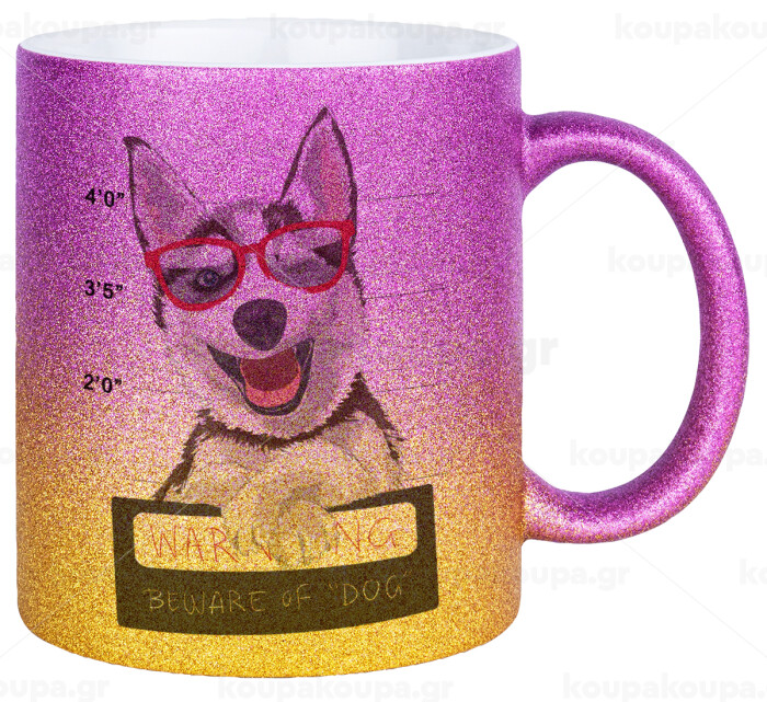 Warning, beware of Dog, Κούπα Χρυσή/Ροζ Glitter, κεραμική, 330ml