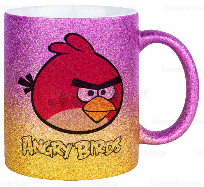 Angry birds Terence, Κούπα Χρυσή/Ροζ Glitter, κεραμική, 330ml