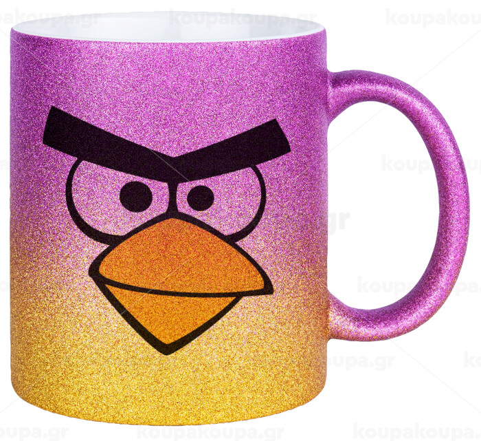 Angry birds eyes, Κούπα Χρυσή/Ροζ Glitter, κεραμική, 330ml