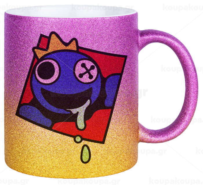 Blue, Rainbow friends, Κούπα Χρυσή/Ροζ Glitter, κεραμική, 330ml