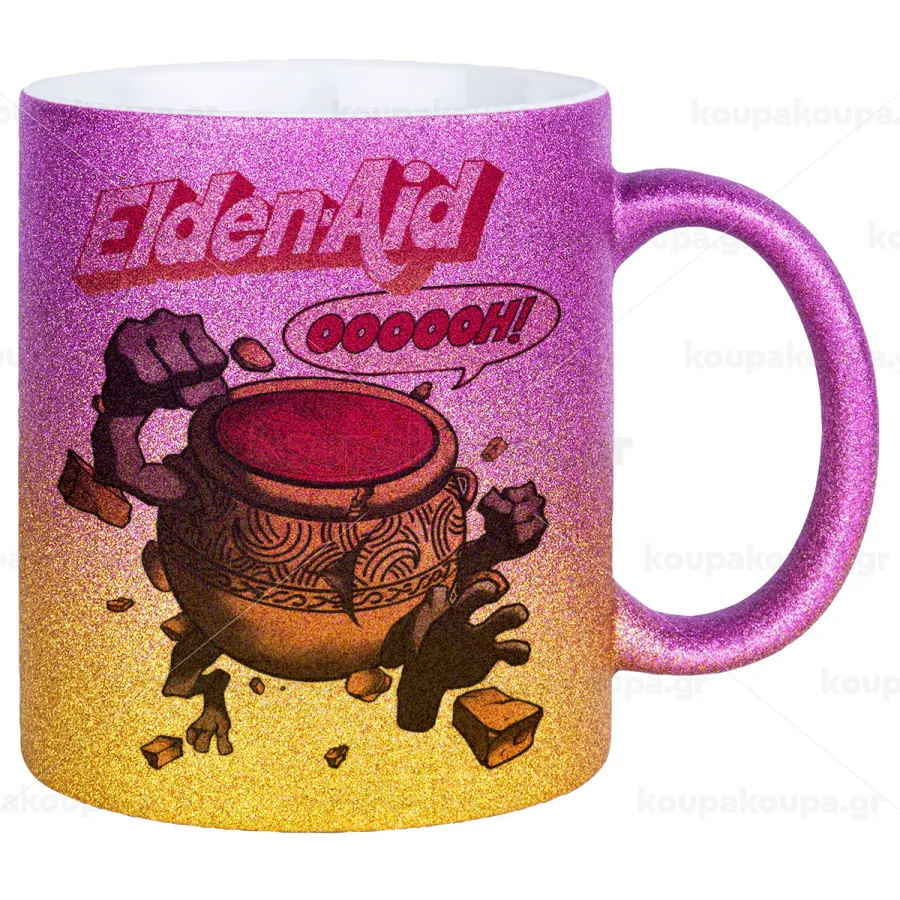 Elden-Aid, Elden Ring inspired , Κούπα Χρυσή/Ροζ Glitter, κεραμική, 330ml