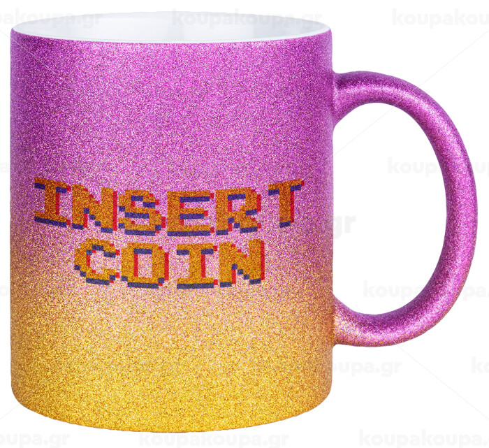 Insert coin!!!, Κούπα Χρυσή/Ροζ Glitter, κεραμική, 330ml