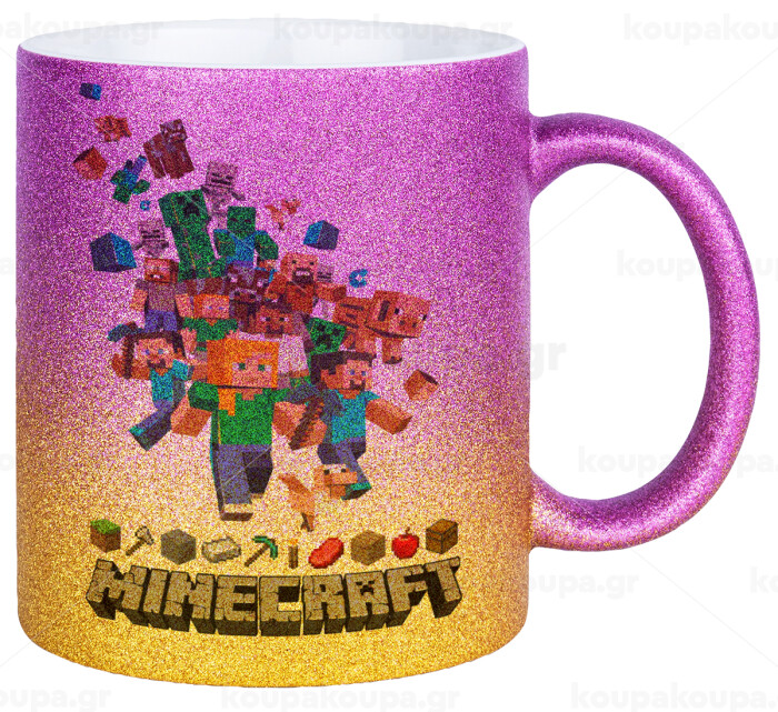 Minecraft adventure, Κούπα Χρυσή/Ροζ Glitter, κεραμική, 330ml