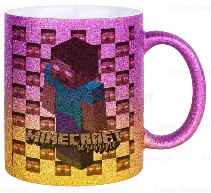 Minecraft herobrine, Κούπα Χρυσή/Ροζ Glitter, κεραμική, 330ml