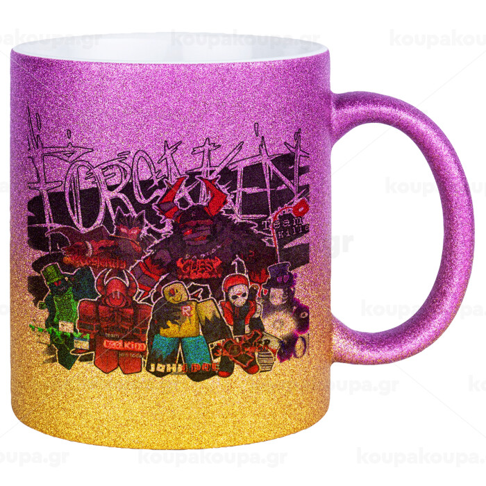 Roblox Forsaken, Κούπα Χρυσή/Ροζ Glitter, κεραμική, 330ml