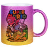 Super mario Jump, Κούπα Χρυσή/Ροζ Glitter, κεραμική, 330ml