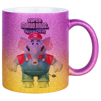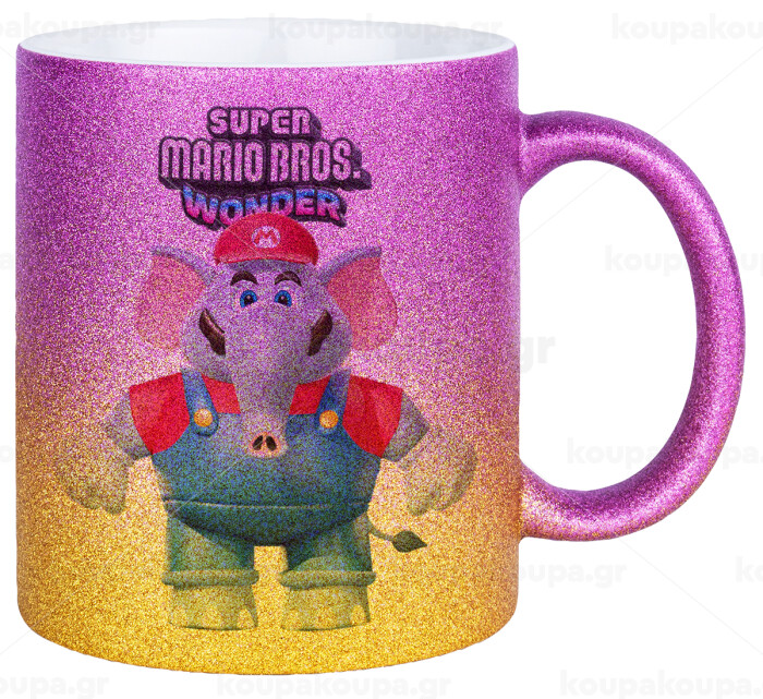Super mario wonder, Κούπα Χρυσή/Ροζ Glitter, κεραμική, 330ml