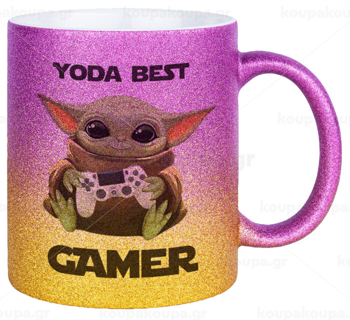 Yoda Best Gamer, Κούπα Χρυσή/Ροζ Glitter, κεραμική, 330ml