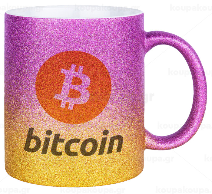 Bitcoin, Κούπα Χρυσή/Ροζ Glitter, κεραμική, 330ml