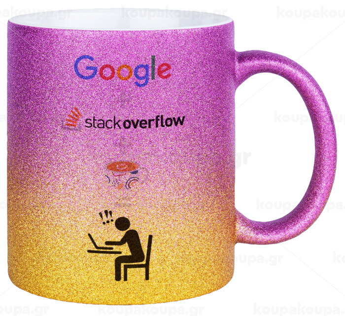 Google + Stack overflow + Coffee, Κούπα Χρυσή/Ροζ Glitter, κεραμική, 330ml