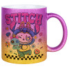 Labubu Stitch, Κούπα Χρυσή/Ροζ Glitter, κεραμική, 330ml