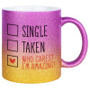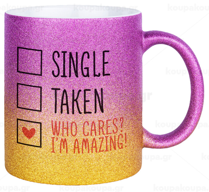 Single, Taken, Who cares i'm amazing, Κούπα Χρυσή/Ροζ Glitter, κεραμική, 330ml