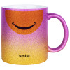 Smile Mug, Κούπα Χρυσή/Ροζ Glitter, κεραμική, 330ml