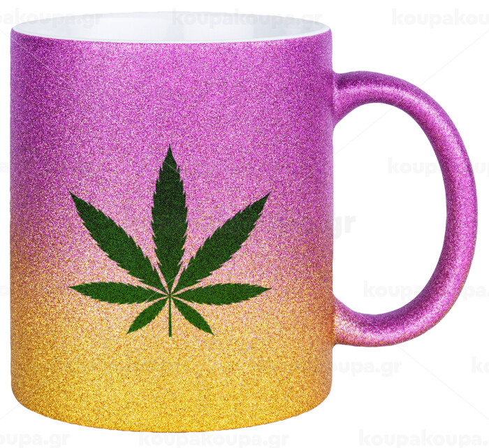 Weed, Κούπα Χρυσή/Ροζ Glitter, κεραμική, 330ml