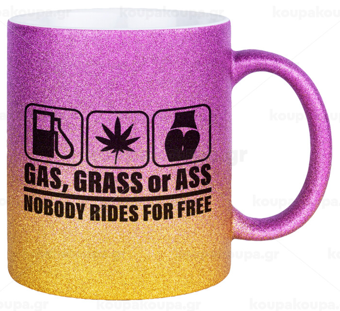 Gas, Grass or Ass, Κούπα Χρυσή/Ροζ Glitter, κεραμική, 330ml