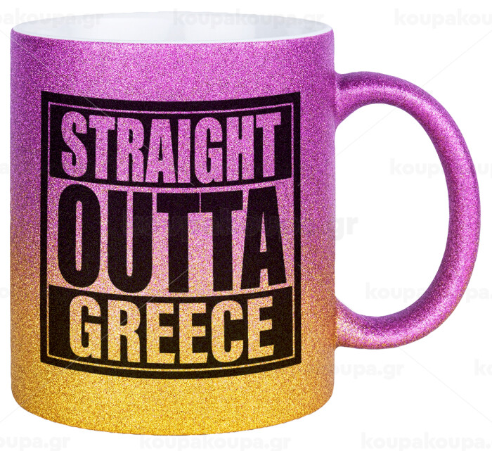 Straight Outta greece, Κούπα Χρυσή/Ροζ Glitter, κεραμική, 330ml
